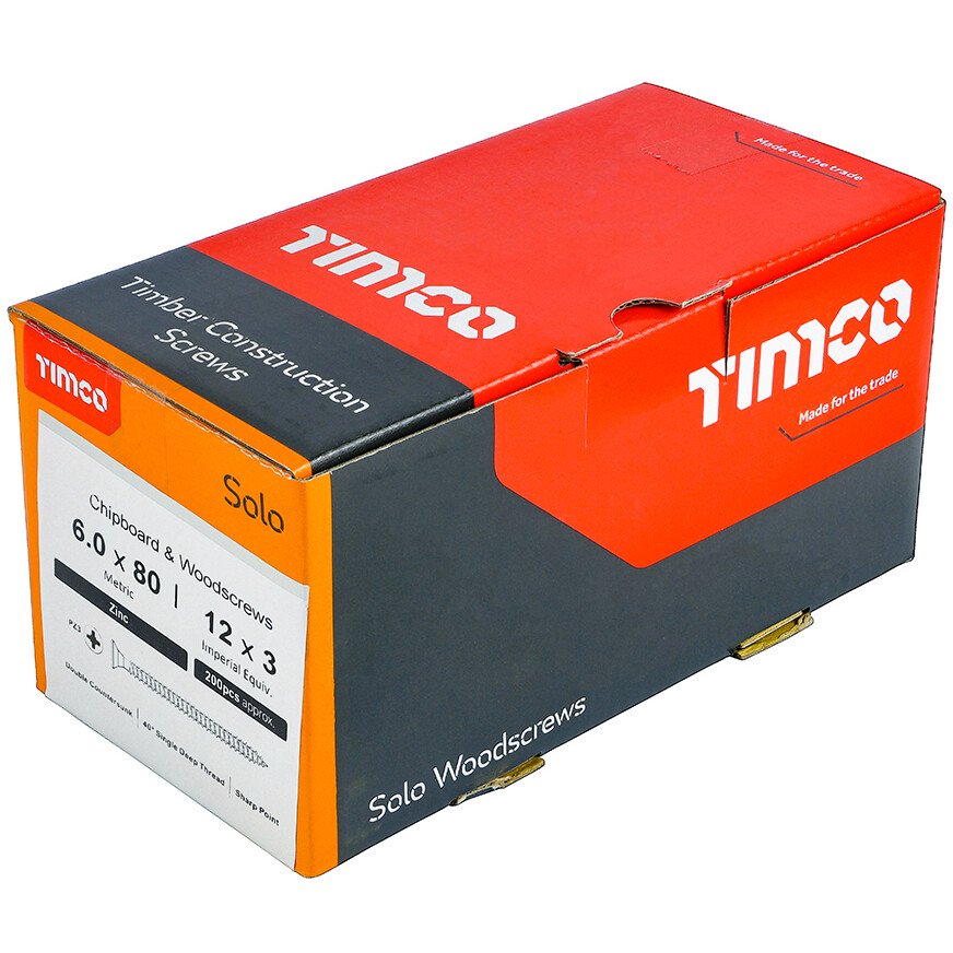 6.0mm x 80mm Solo Woodscrew PZ3 CSK - BZP (Box of 200) 60080SOLOZ Timco