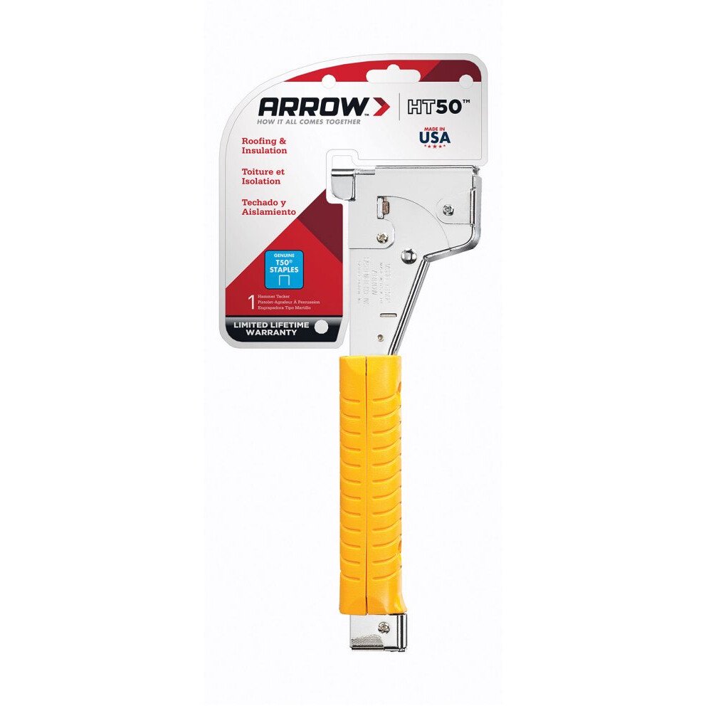 - The Arrow AHT50 Hammer Tacker is an iconic American tool since the 1950's, the HT50 is still proudly made in the USA with a chromed steel housing, all steel working parts hardened in a 1,500 degree furnace, and a high impact sure-grip handle