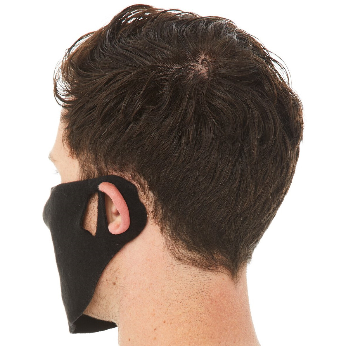 One-size-fits-all design with raw edges, two ear holes and a contoured shape makes the mask versatile for many different face sizes and shapes.