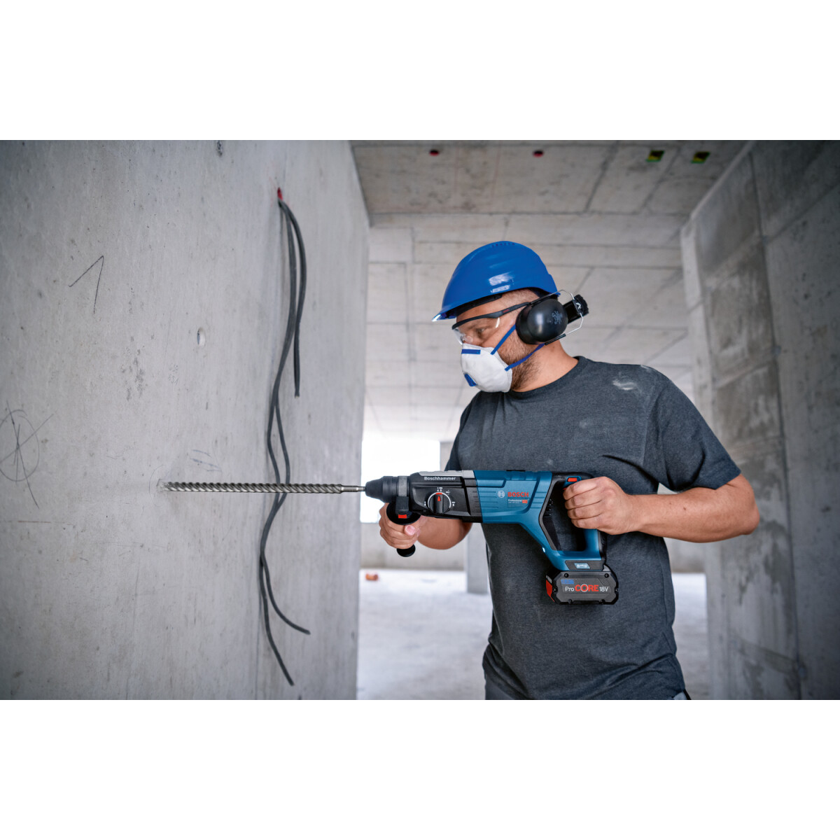 The GBH 18V-28 DC Professional features a tool hook for hanging the rotary hammer during interruptions at work.Supplied With: