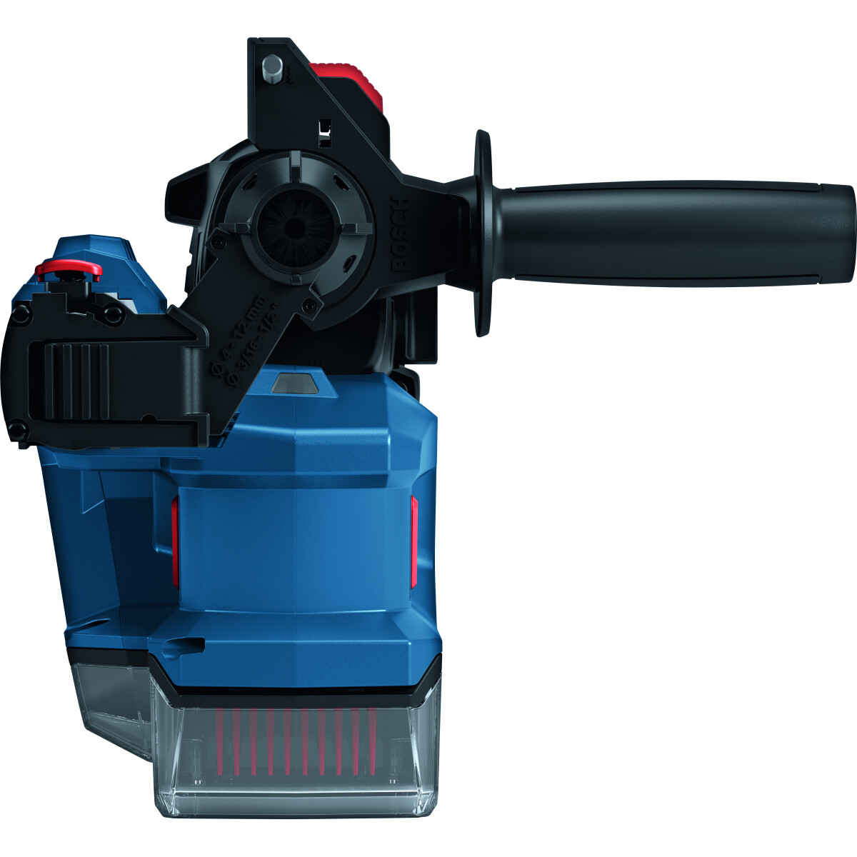 As well as reducing the amount of inhalable dust in your working environment, you’ll find this tool easy and comfortable to use, even when drilling overhead. You can operate it with one hand thanks to large and ergonomically shaped unlocking buttons.