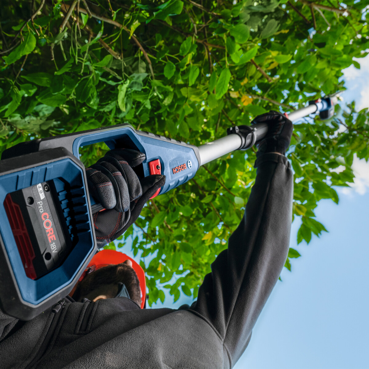 The GHE 18V-50 TP Professional hedgepole is the ideal tool for trimming hedges at height. Compatible with the Bosch Professional 18V System and with the multi-brand battery alliance AMPShare.