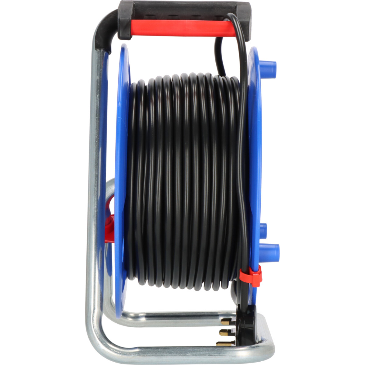 - Extension Lead Reel with reel body made from special plastic on a galvanised steel tube frame