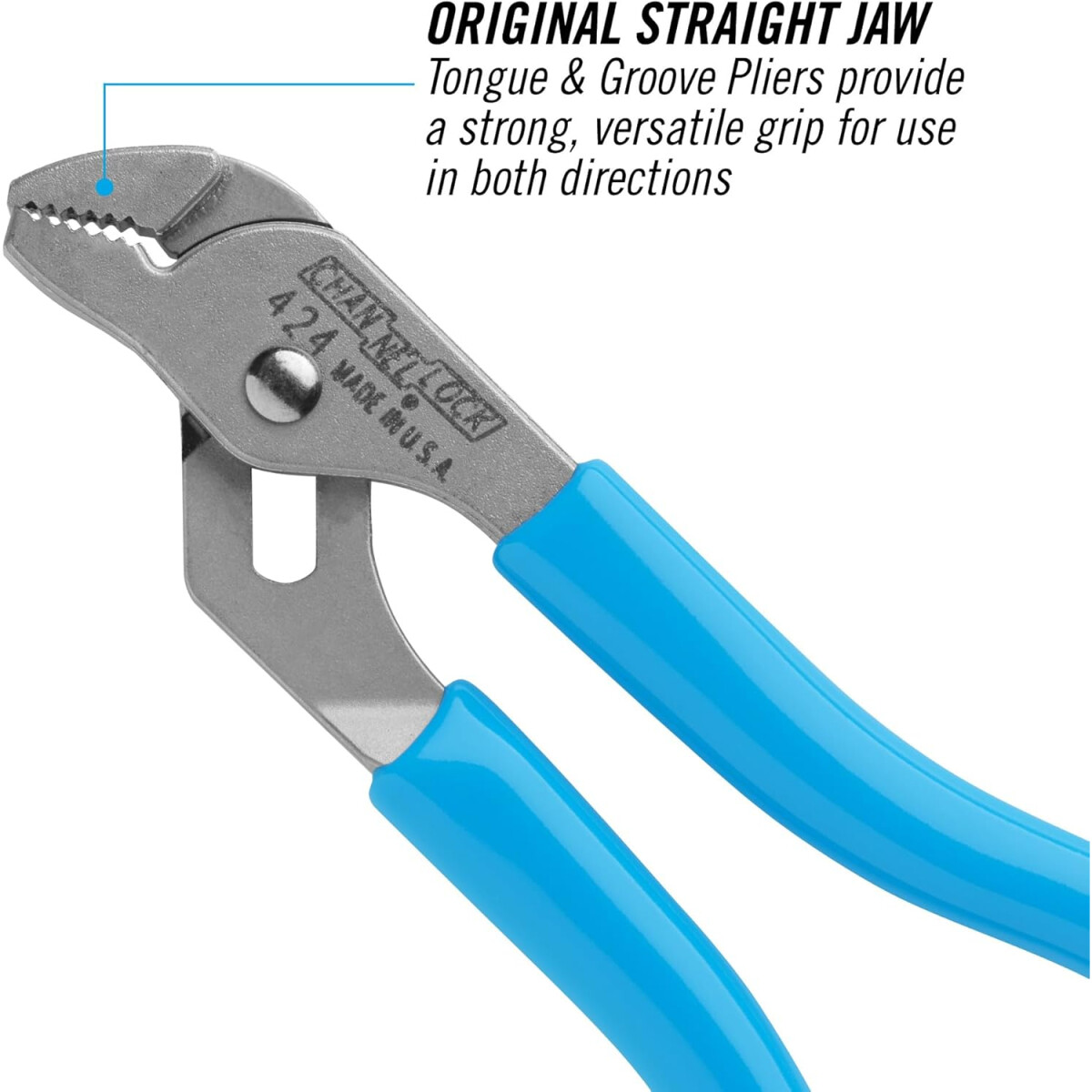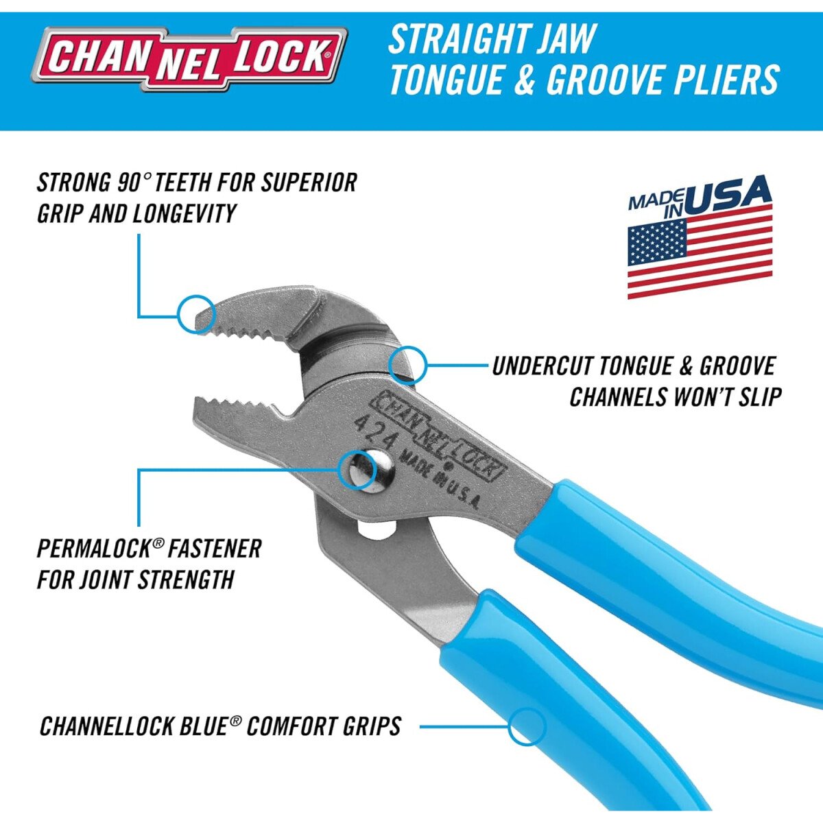 - Channellock Straight Jaw Tongue & Groove Pliers are built to last with a Permalock fastener to eliminate nut and bolt failure, patented reinforcing edge to minimize stress breakage and laser-hardened teeth to provide a better, longer lasting grip