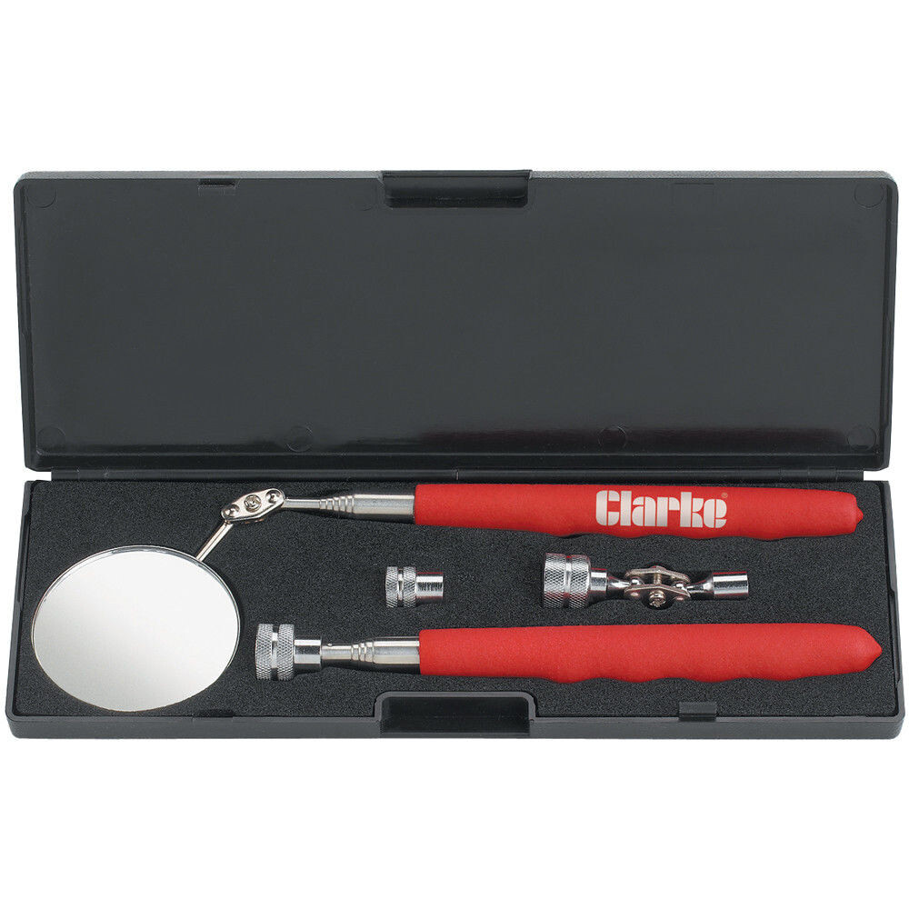 Both have telescopic, cushion grip handles Pick up tool is supplied with 3 strong magnetic tips (Large, Small & Articulated) Mirror extends to max 920mm Pick up tool extends to max 645mm