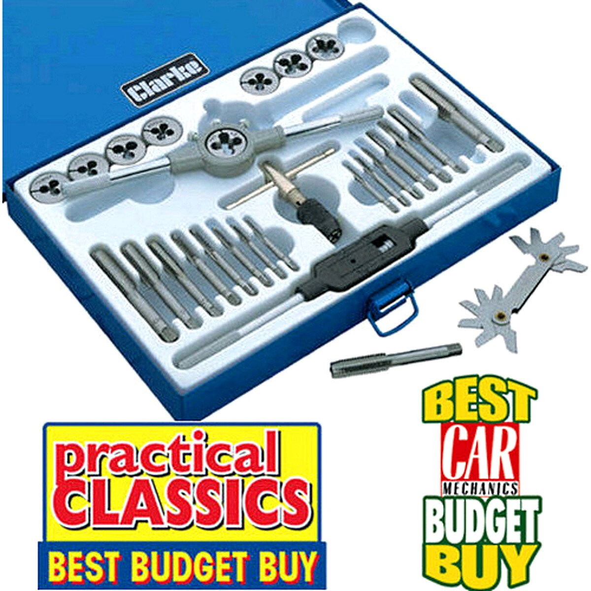 Metric combination tap & die sets - M3 x 0.5, M3.5 x 0.6, M4 x 0.7, M5 x 0.8, M6 x 1, M8 x 1.25, M10 x 1.5, M12 x 1.75 1" O/D split dies. Supplied with tap wrench, die handle, T-handle tap wrench & metric screw pitch gauge. All neatly presented in a metal storage case