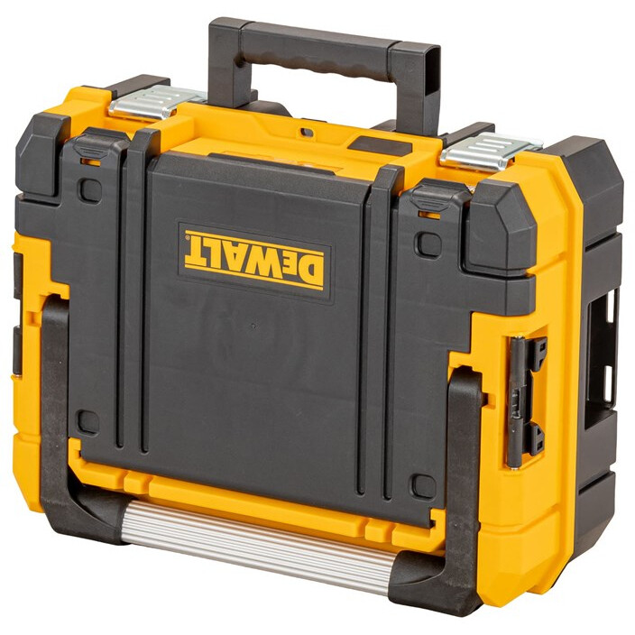 - DWST83344-1 DeWALT TSTAK Organiser Box includes customisable foam insert keeping power tools safe during transportation, heavy duty metal front latches, aluminium top handle plus long life metal pin side latches allowing TSTAK modules to be connected safely together