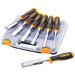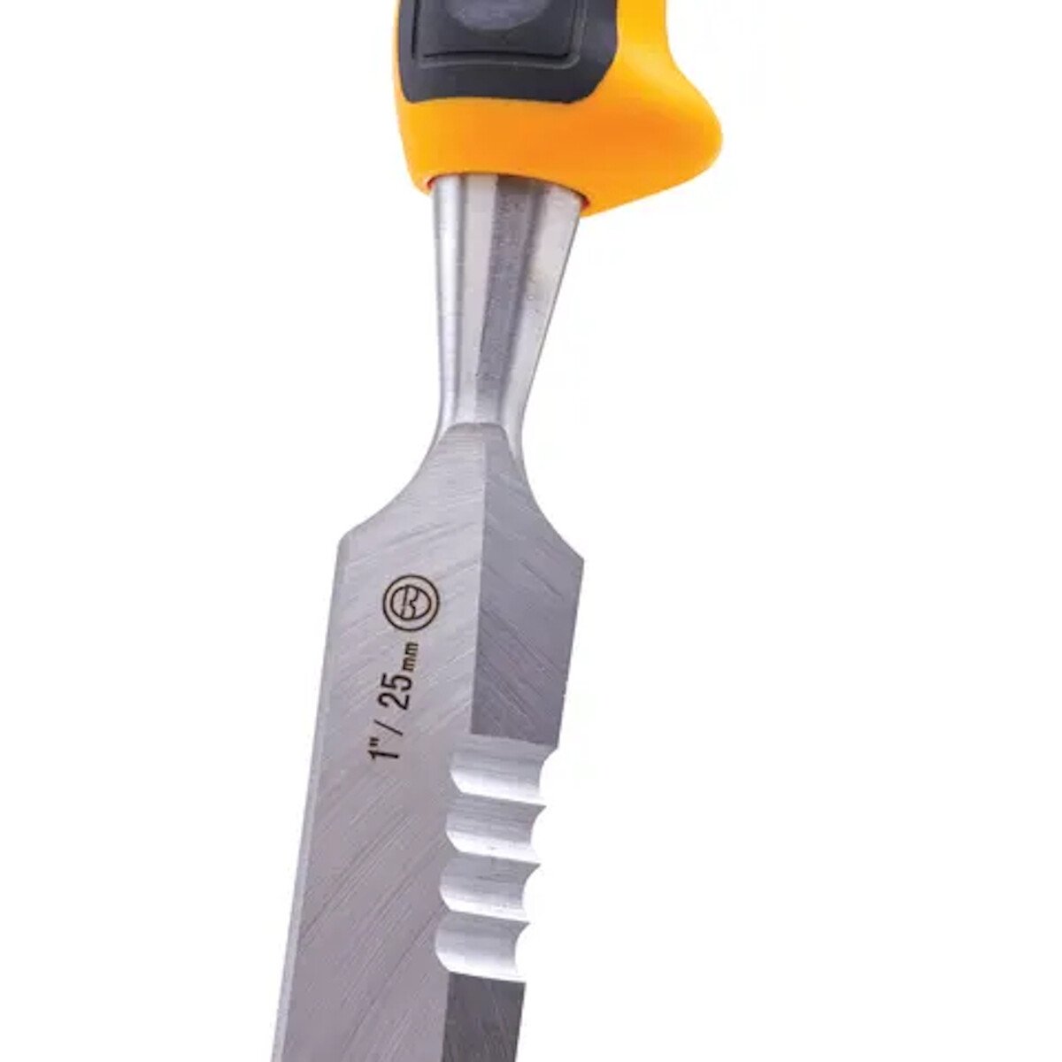 All chisels have a tempered chrome-steel blade for added durability while the bi-material handle offers both comfort and control.