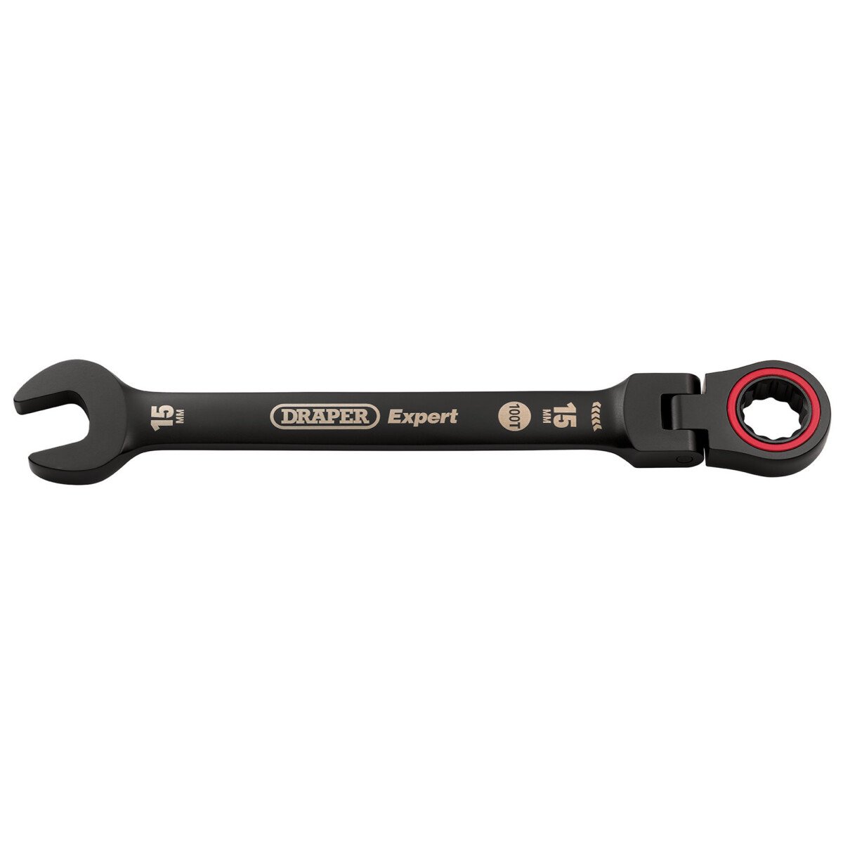 - This 15mm Draper Expert HI-TORQ® metric flexible head ratchet combination spanner is manufactured from hardened and tempered chrome vanadium steel, with black electroplating for corrosion protection