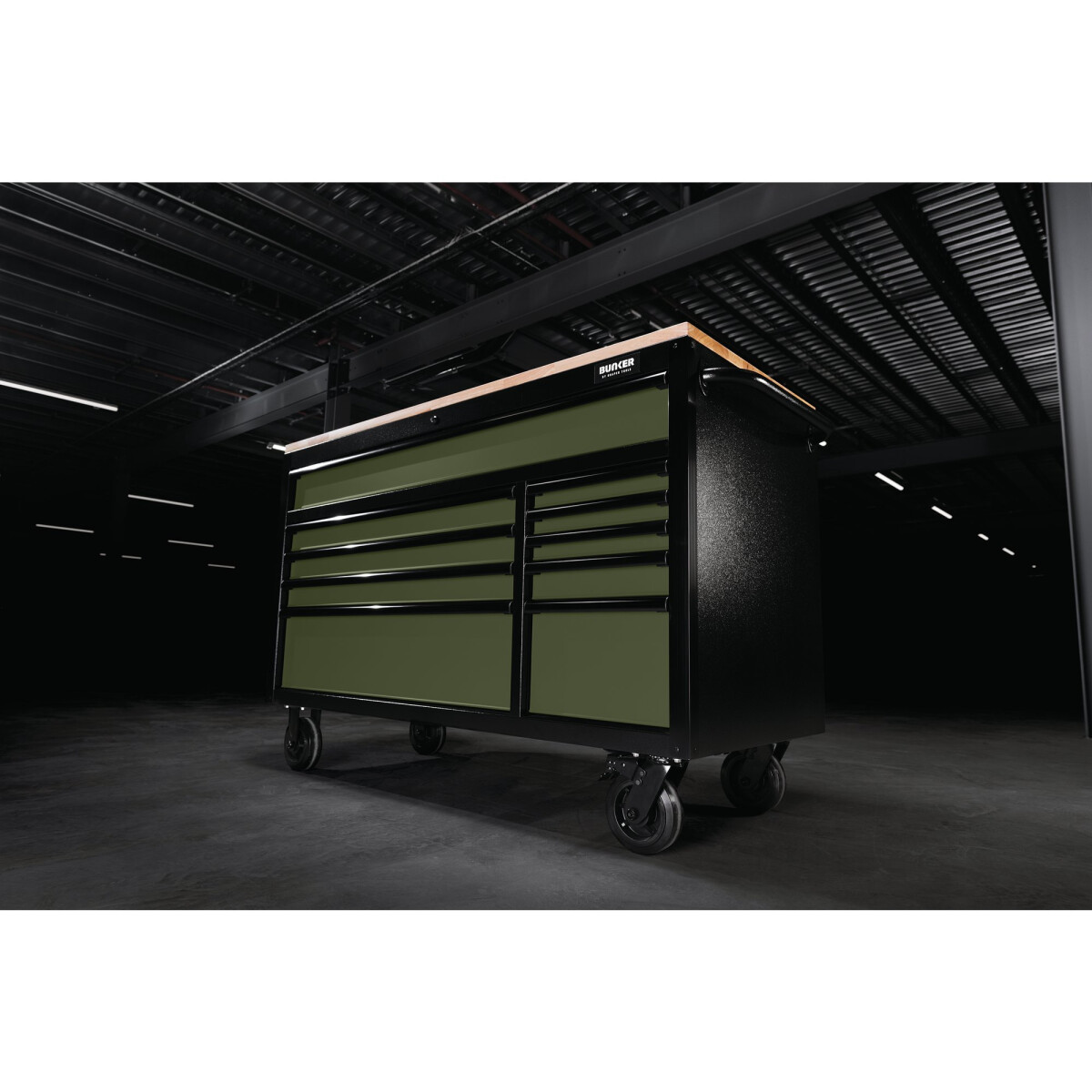 1 x BUNKER® Workbench Roller Tool Cabinet, 10 Drawer, 56", Green