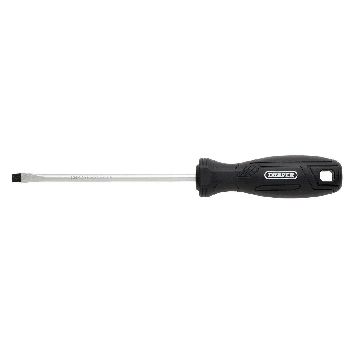 These slotted screwdrivers have a hardened chrome vanadium steel round blade with chrome plating for corrosion protection.