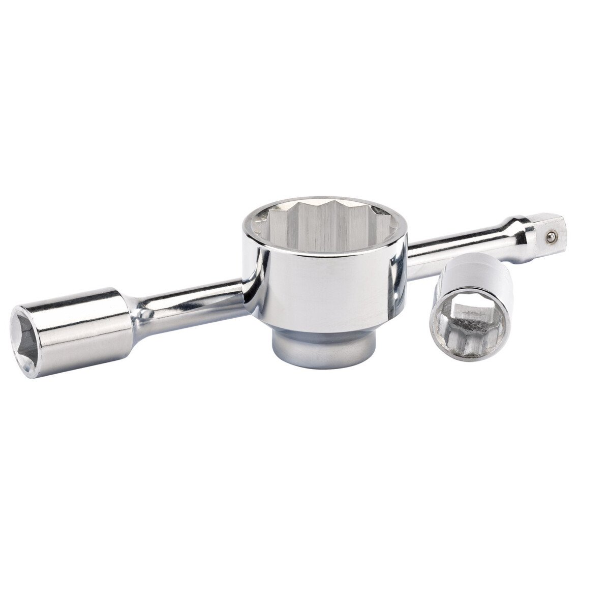 • 10 sockets size 36, 41, 46, 50, 55, 60, 65, 70, 75, 80mm • reversible ratchet • extension bar 400mm • sliding 'T' bar