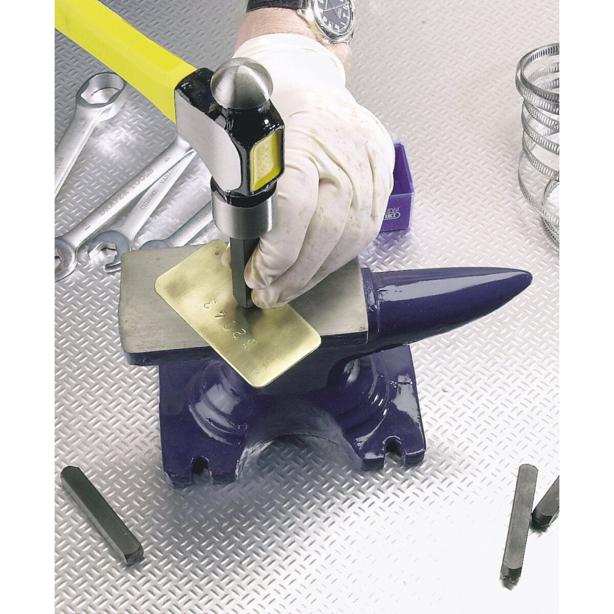 Single bick cast iron anvil, bolt down pattern. Grey cast iron. Oblong working surface 120 x 65mm. Display carton.