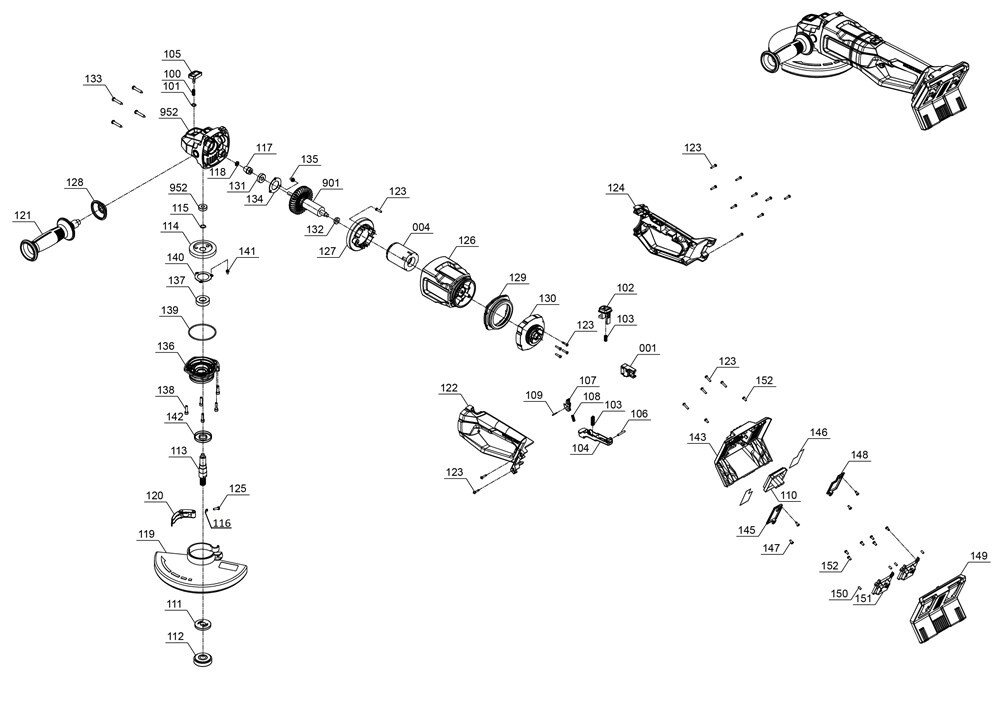 - The angle grinder is a member of the Power X-Change family, 2x 18V batteries are required for operation