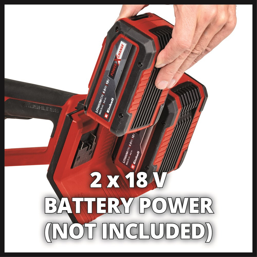 - Requires 2x 18V 3.0Ah (or higher) Einhell Power X-Change rechargeable battery for optimum results