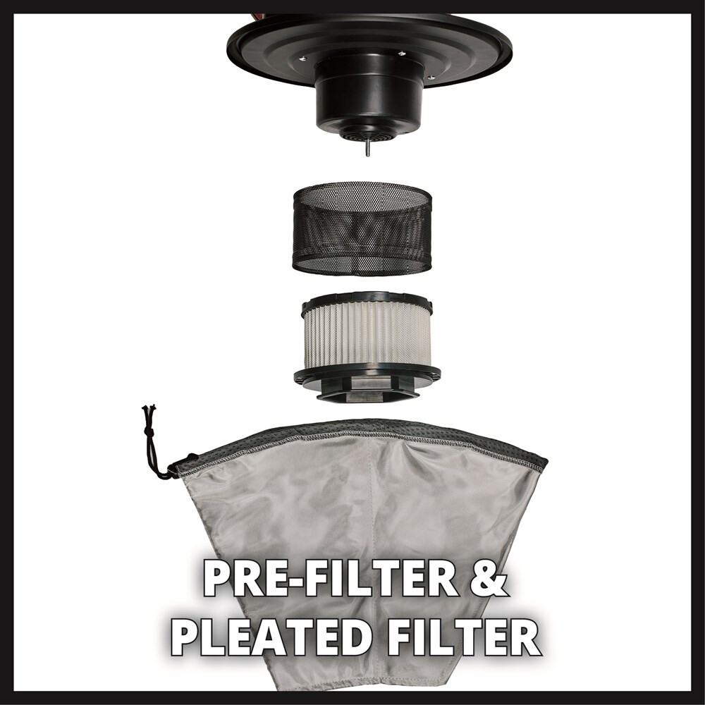 - An additional pre-filter enhances the filtration even further and also prevents a fast blockage of the pleated filter