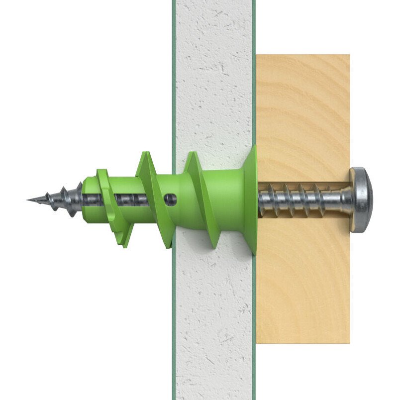 - The gypsum plasterboard anchor GK Green has the same performance properties and load-carrying properties as the original