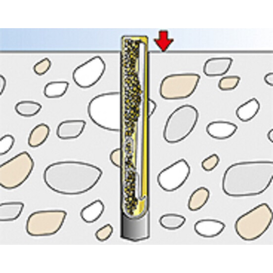 - During setting, the oblique edge of the fixing element destroys the capsule, and mixes and activates the mortar