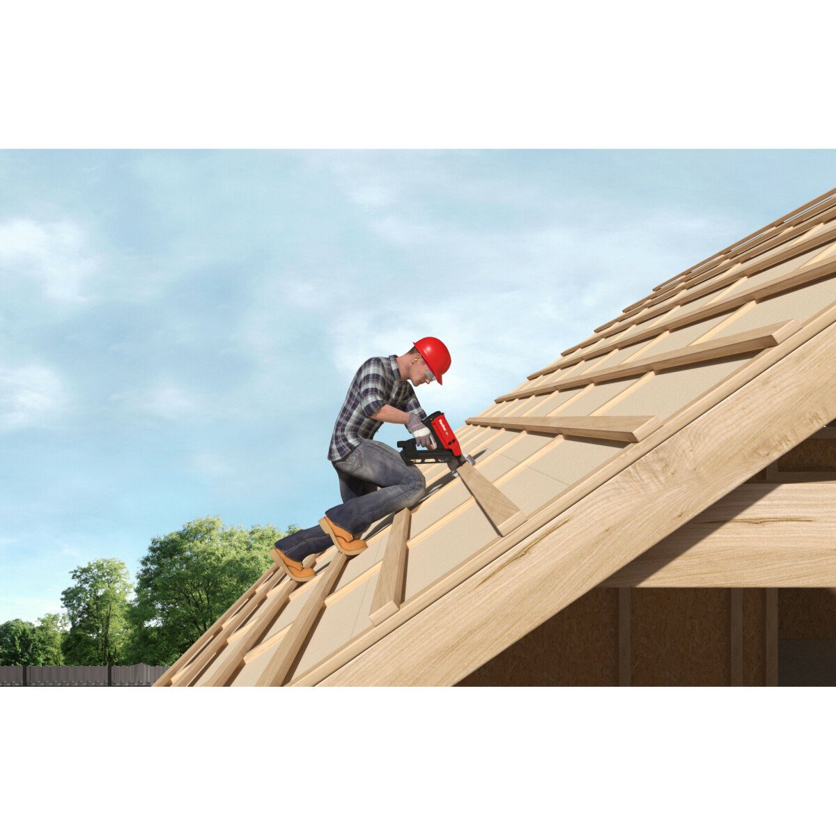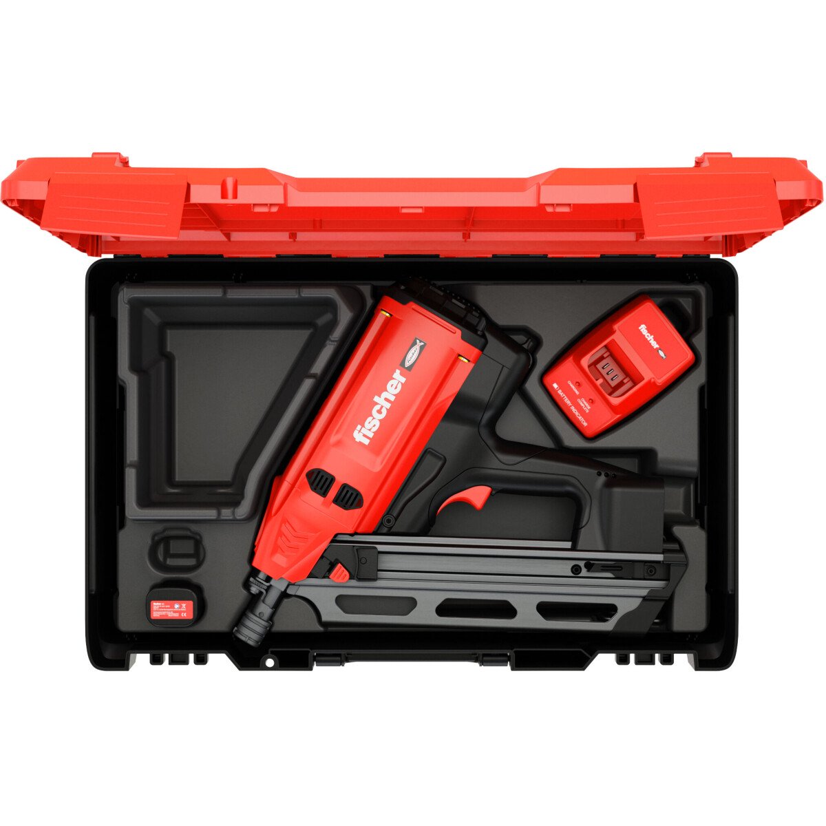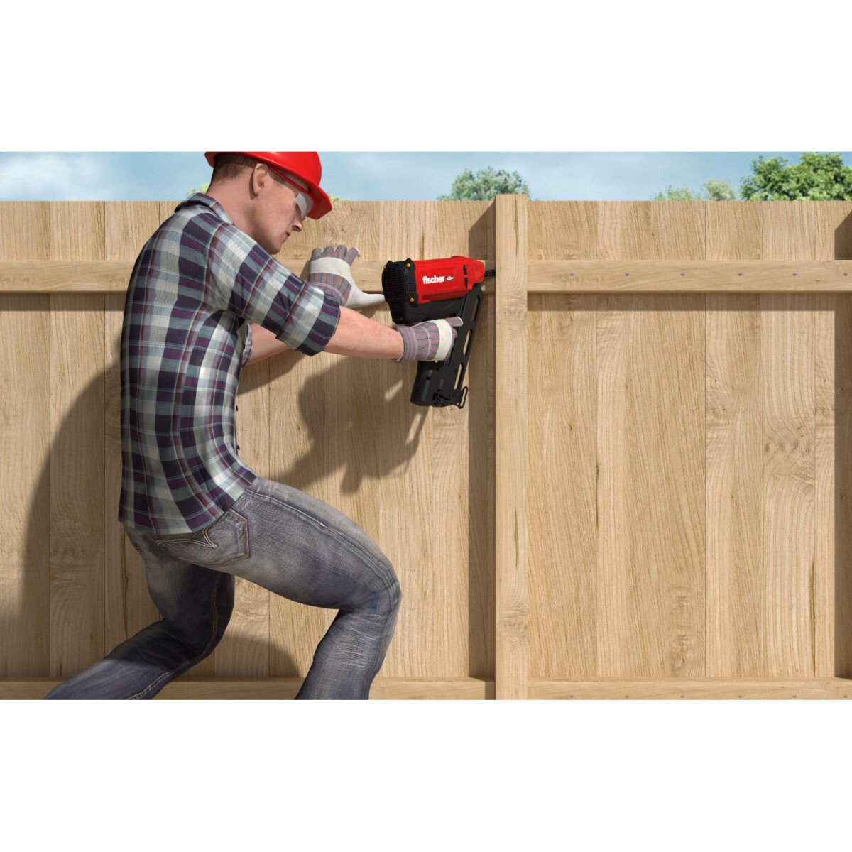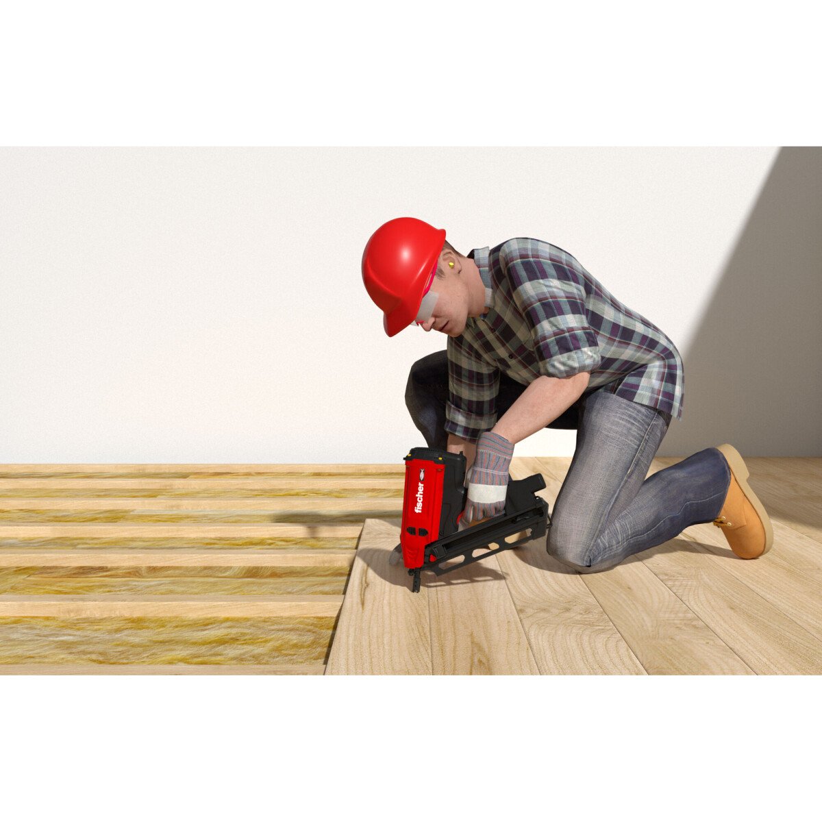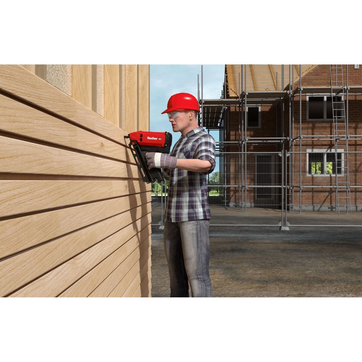 - The fischer FGW 90F gas-actuated setting tool drives nails precisely into the wood substrate with 90-joule setting energy