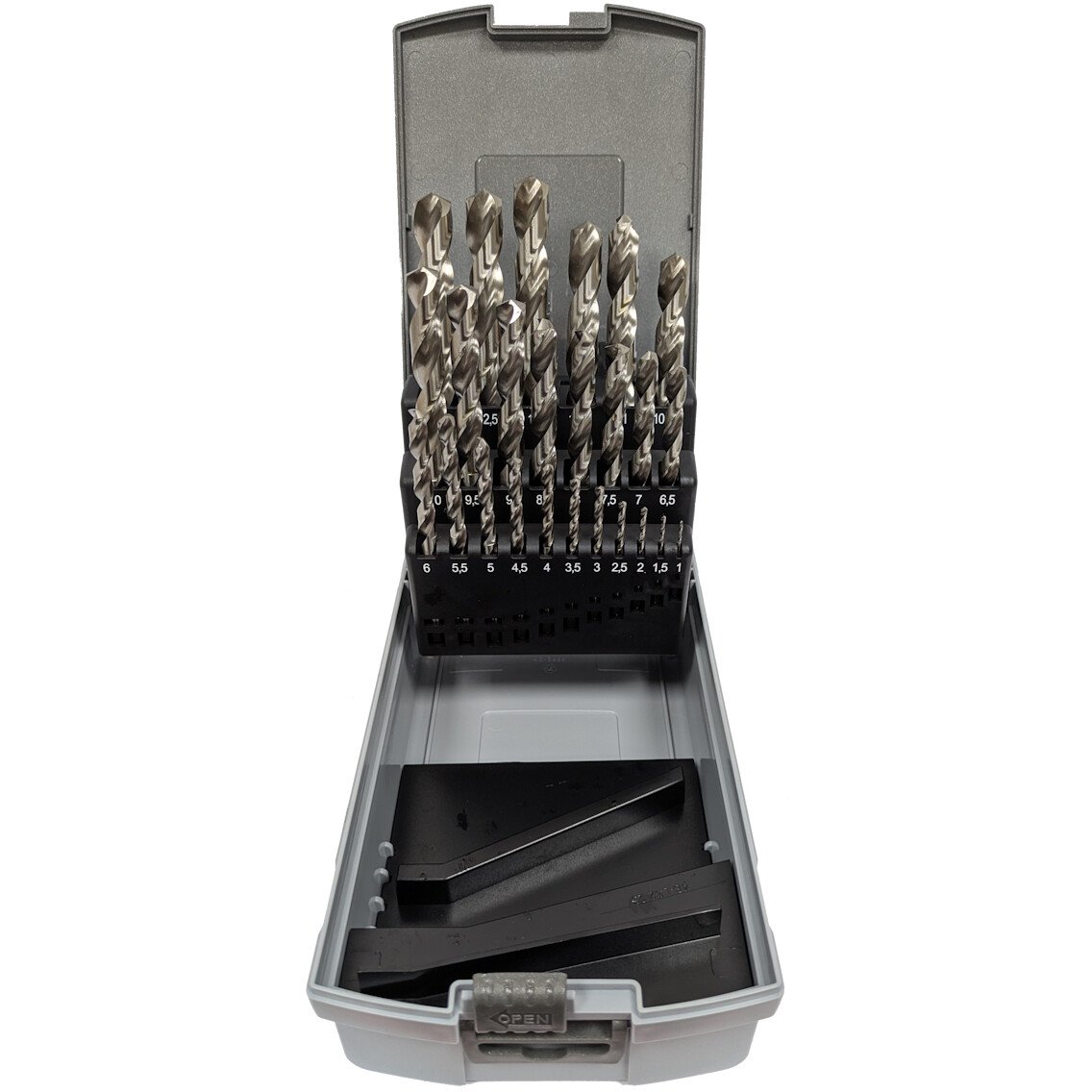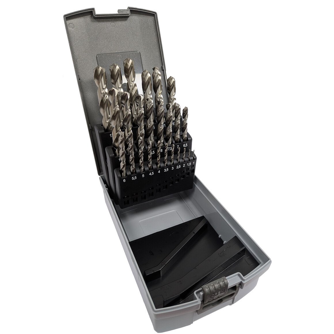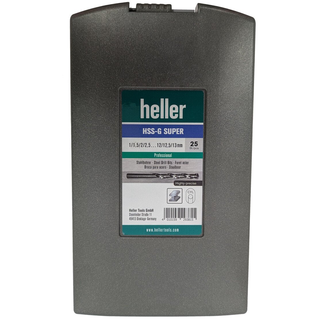 25 piece set of proven steel drill bits with Heller quality 1mm to 13mm in 0.5mm increments.
