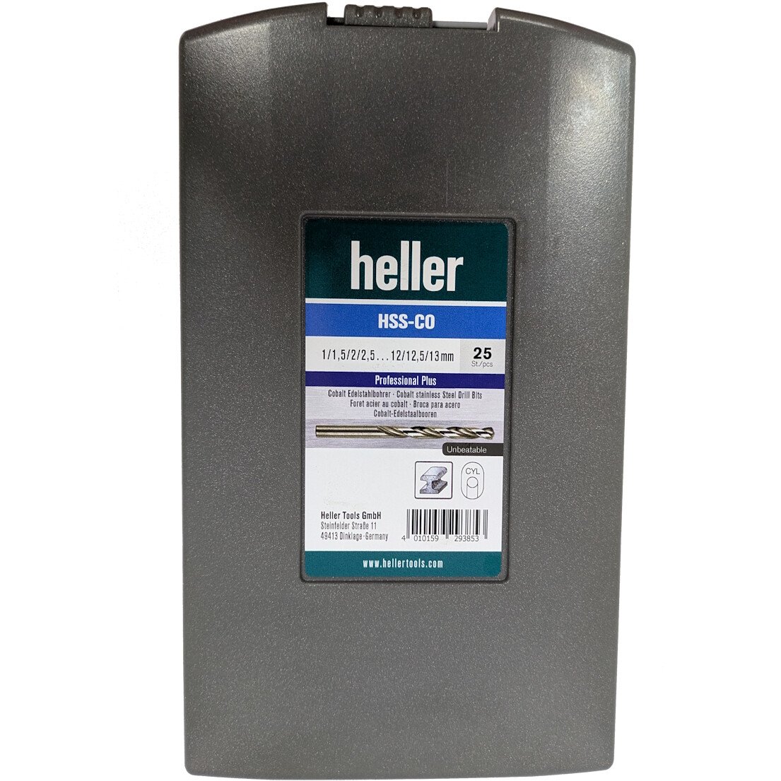 1mm to 13mm in 0.5mm increments 25 piece set of proven steel drill bits with Heller quality.