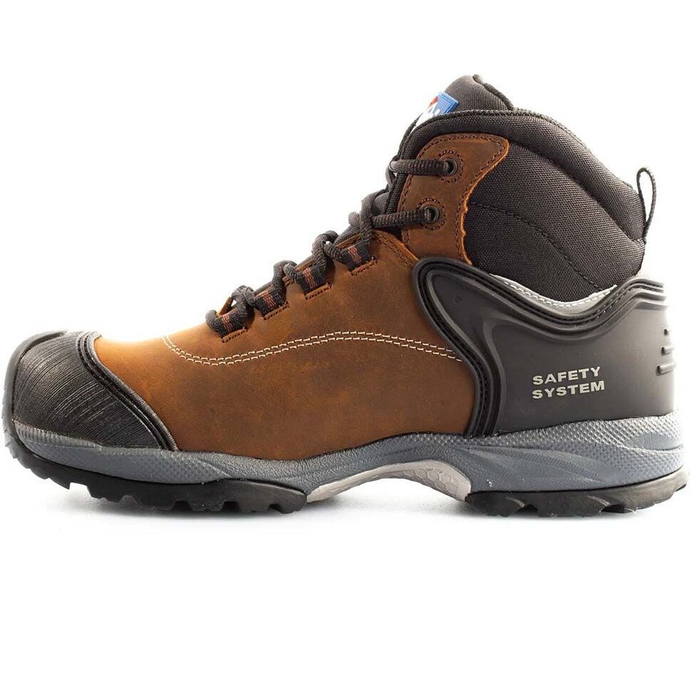 S3 safety rating SRC slip resistance Waterproof Brown Nubuck leather upper with scuff cap and kickplate Anti Static Oil resistant 300oC temperature resistant outsole Composite toe cap Composite midsole Gravity2 fatigue reducing outsole# Anti-Torsion sole Aqua-Dry lining