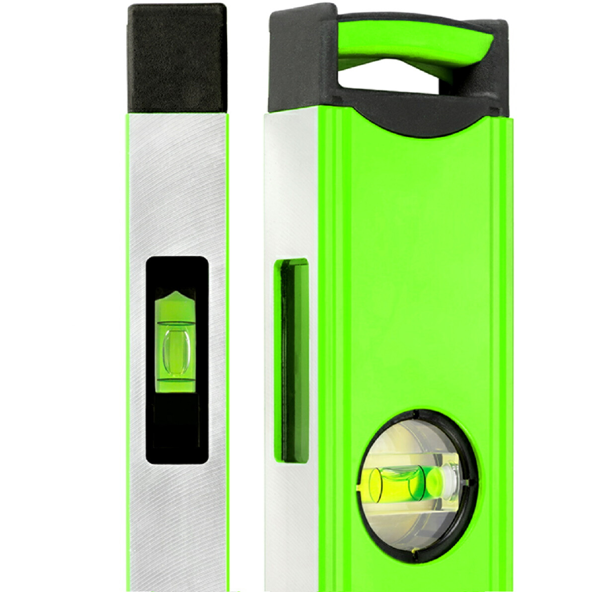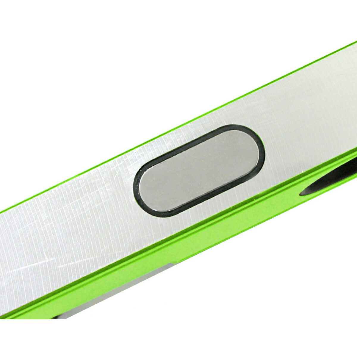 Two rare earth magnets inset into the base of the level enabling secure, hands-free attachment to vertical metal surfaces.- Features