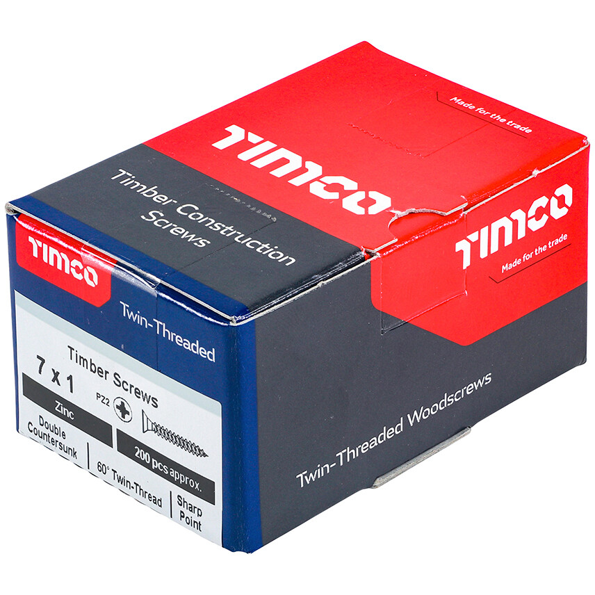No. 7 x 1" Twin Woodscrew PZ2 CSK - BZP (Box of 200) 00071CWZ Timco