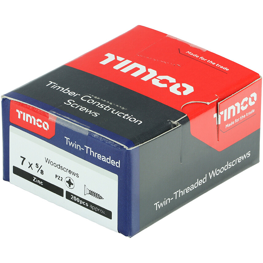 No. 7 x 5/8" Twin Woodscrew PZ2 CSK - BZP (Box of 200) 00758CWZ Timco