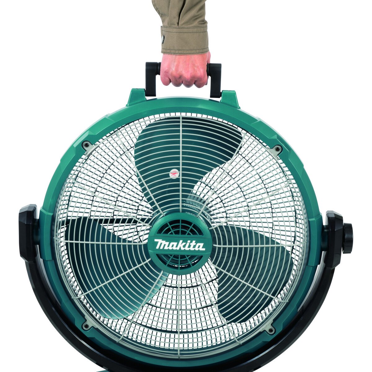 Battery type: Li-ion Battery power: 40v / 18v Fan Diameter 450 mm Max Air Speed Min - Max: 96 – 300 m/ min Air Flow Min - Max: 38 – 120 m³/ min Run time without oscillation: 6.0Ah LXT 90 min 4.0Ah XGT 115 min 8.0Ah XGT 230 min Run time with oscillation: 6.0Ah LXT 85 min 4.0Ah XGT 110 min 8.0Ah XGT 220 min Net Weight 7.9Kg