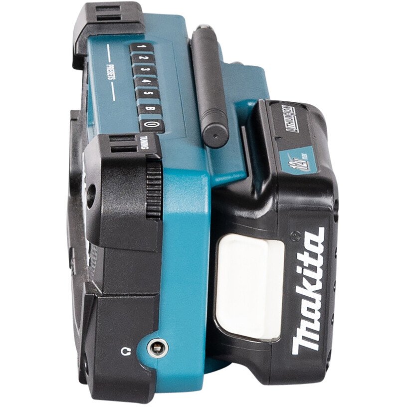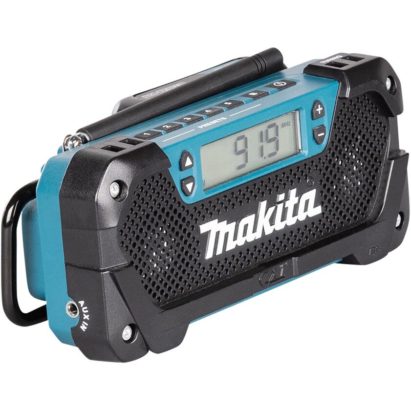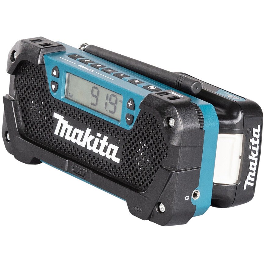 A handy cordless radio with two front loudspeakers, runs on Makita’s CXT® 12V max batteries.