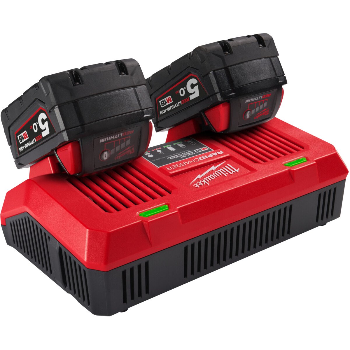 Maximises productivity through simultaneous charging - charges two batteries at the same time - while also being up to 3x faster than standard M12-18C charger