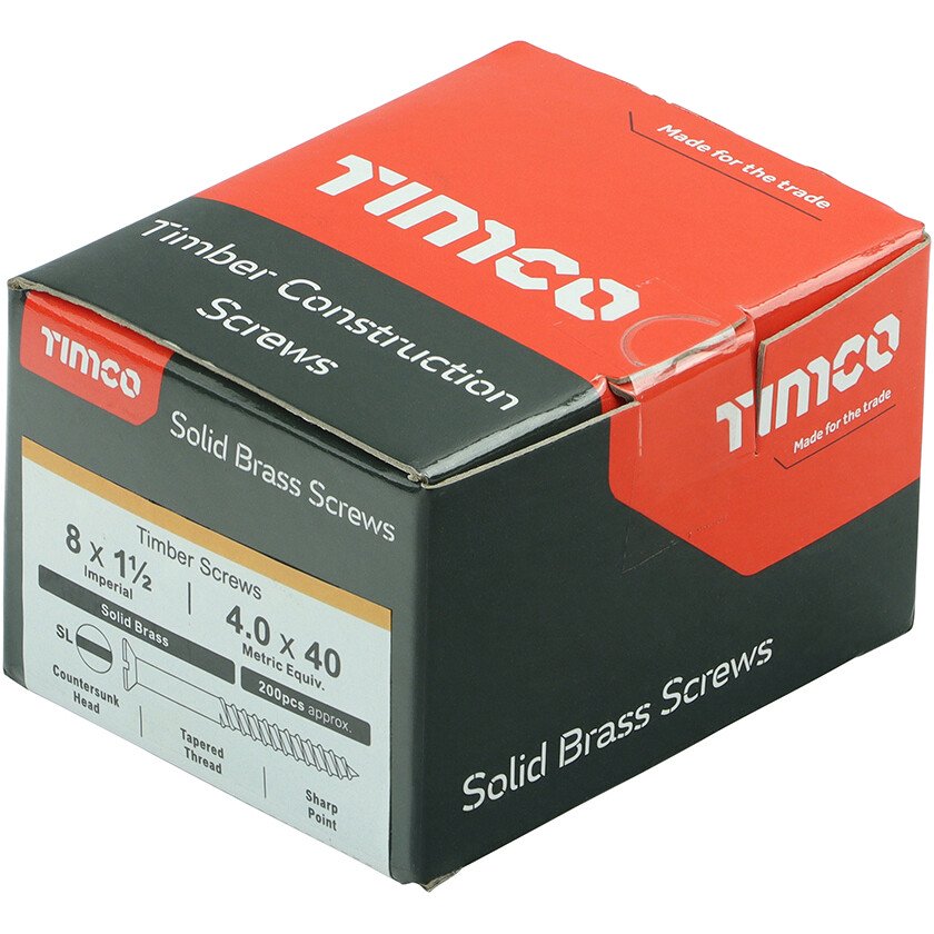 No. 8 x 1.1/2" Brass Woodscrew Slotted CSK (Box of 200) 08112CBS Timco
