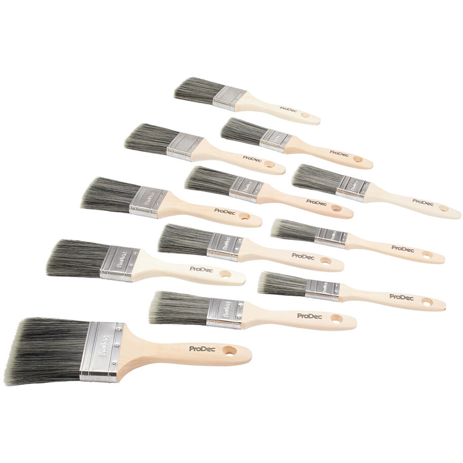 The Decorator's Dozen paint brush set features the decorator's most popular sizes for a wide range of jobs including cutting in edges on walls and ceilings, painting and staining woodwork including doors, architraves, skirting boards and other trim, and more
