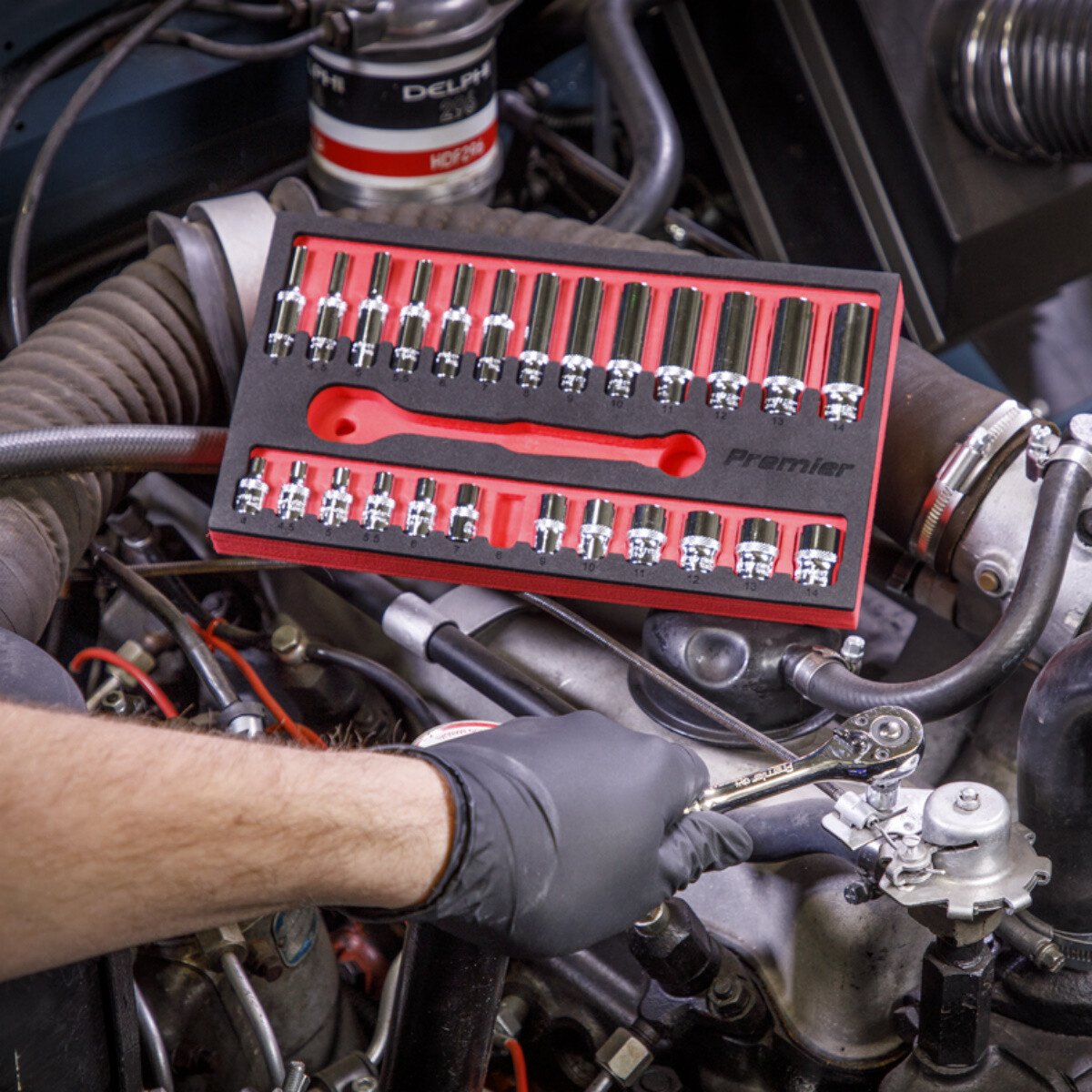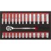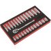 • Deluxe professional socket set with standard and deep heat treated mirror polished Chrome Vanadium sockets.