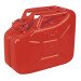 Red jerry can with 10ltr capacity manufactured from 0.9mm pickled steel sheet with fuel resistant lining.