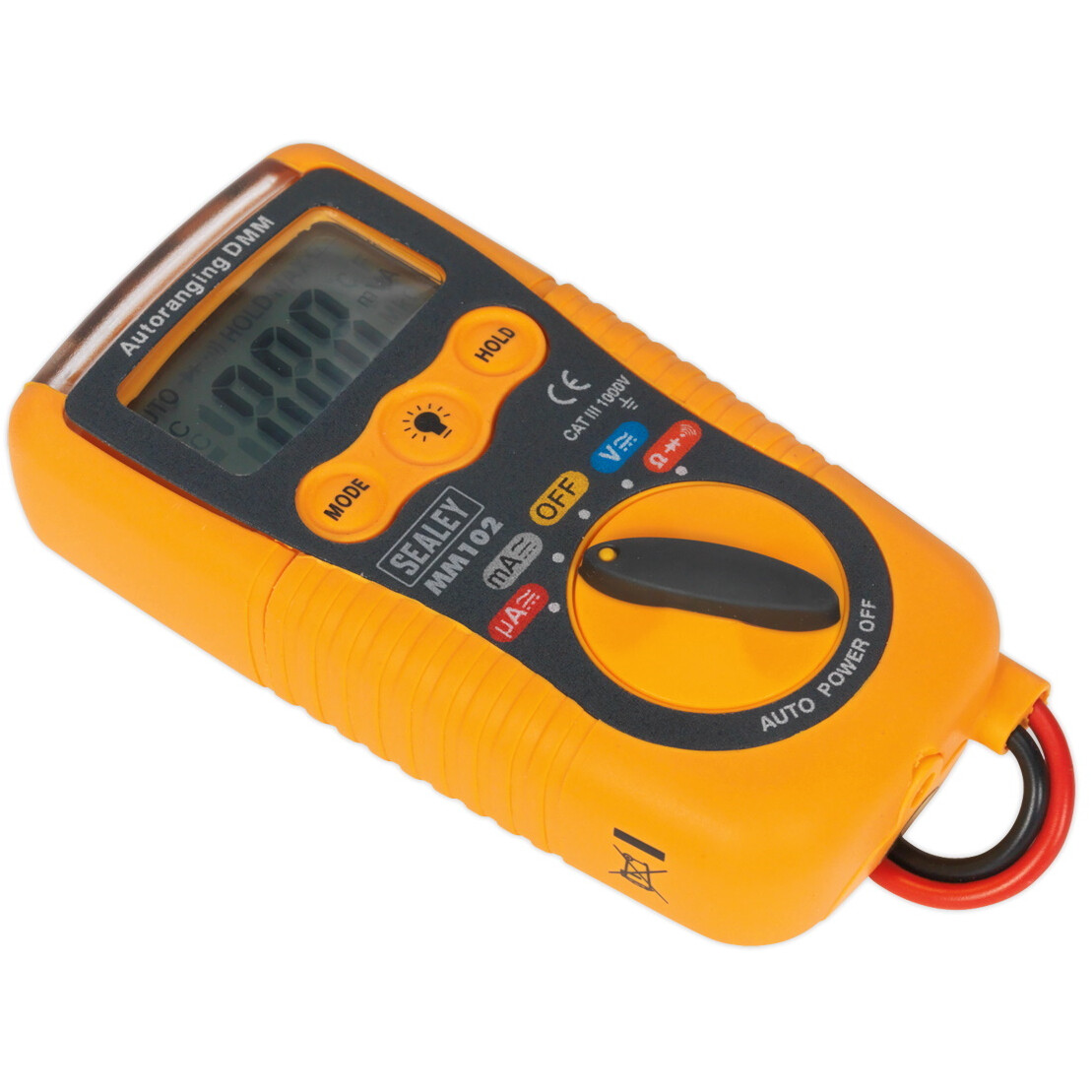 Lightweight, auto-ranging digital multimeter with double moulded plastic housing and a 2000 counts LCD display.