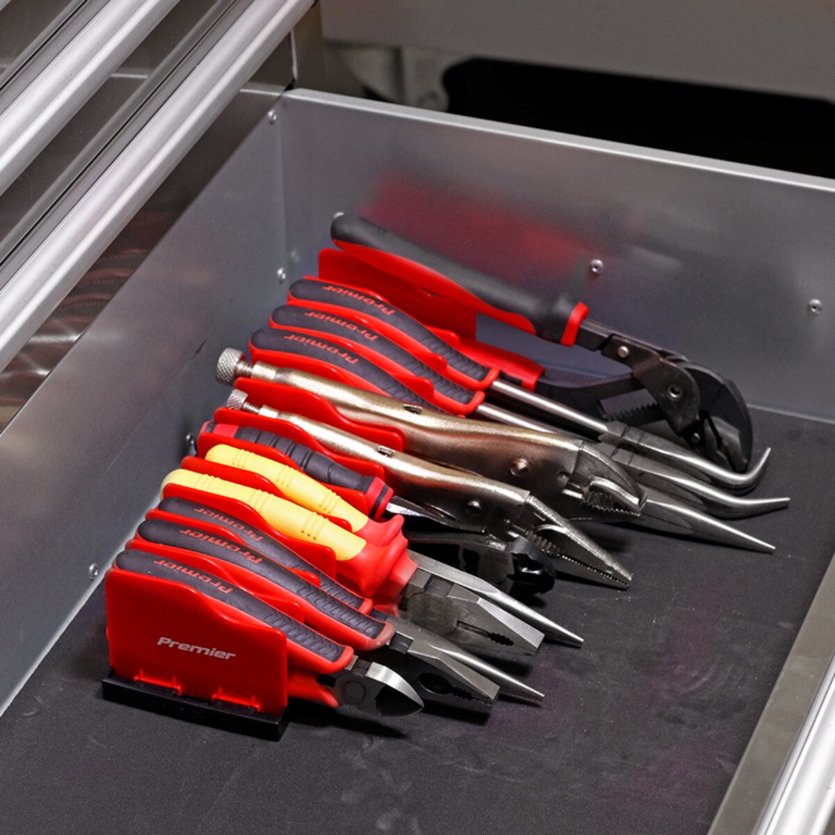 • Adjustable rigid dividers for the organised storage of a wide variety of pliers.