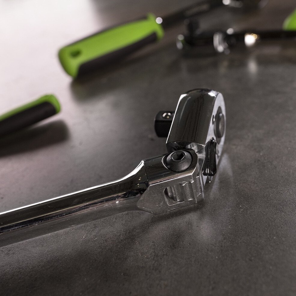 • Chrome Vanadium steel 72-tooth extra-long flex ratchet wrench, hardened and tempered, with a fully polished mirror finish.