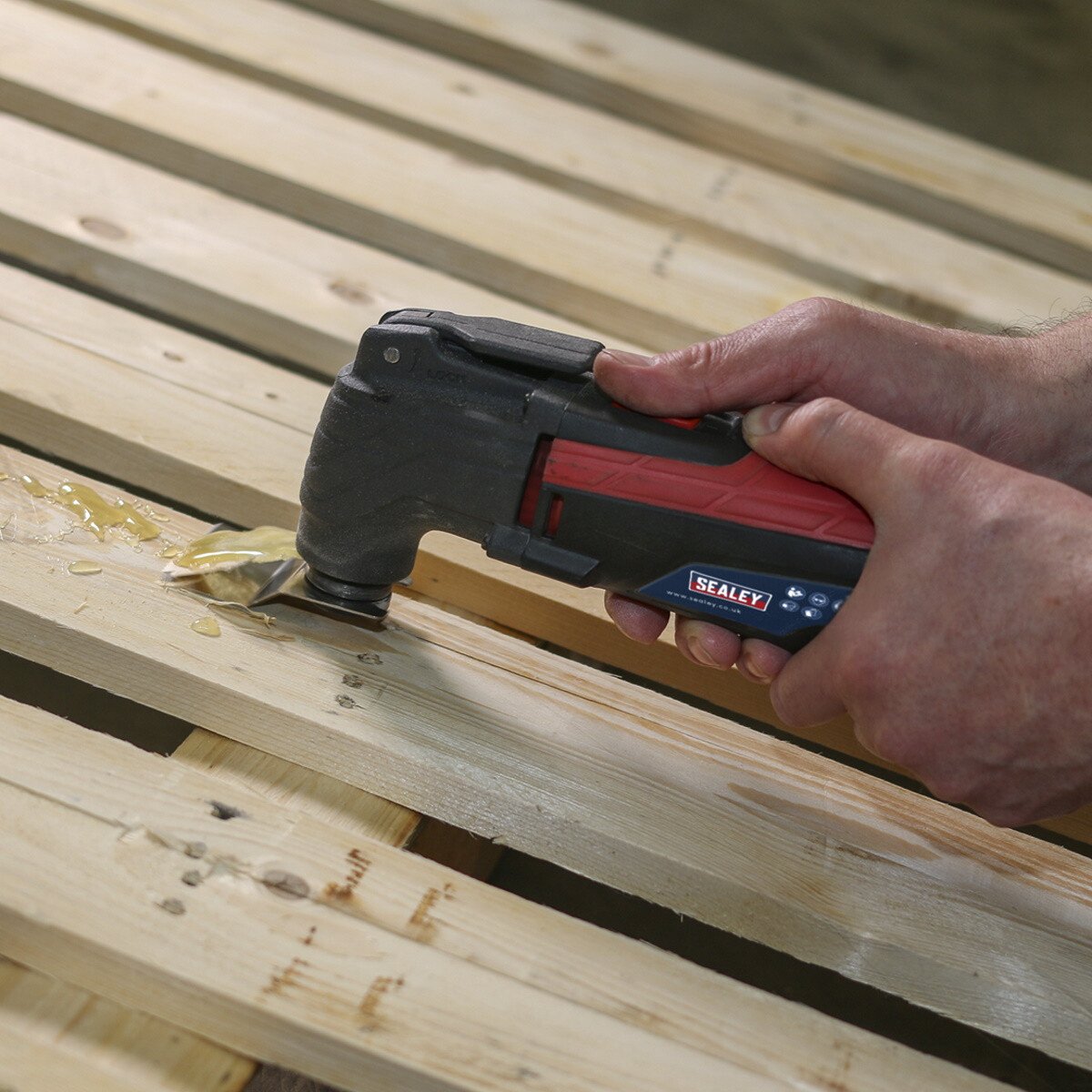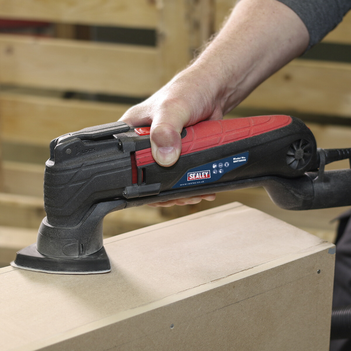 One tool suitable for multiple tasks such as sanding, scraping and cutting various materials.