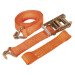 Suitable for securing cars on transporters using wheel strap, which slides on to the main tie down.