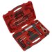 KIT INCLUDES - 2-pin magnetic adaptor for use with interchangeable brake adaptor plates, thrust pin, one and two brake piston spreaders, thrust bolt, 10mm ratchet spanner, locking nut spanner and hose clip attachment.