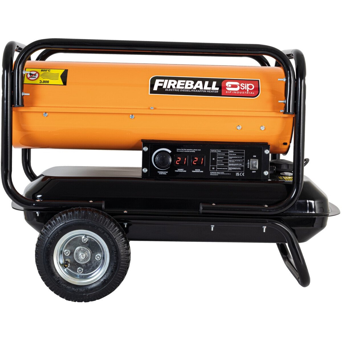 - The SIP FIREBALL XD75 Diesel/Paraffin Space Heater is a wheel-mounted heater designed to quickly and effectively heat medium-sized workshops and garage spaces