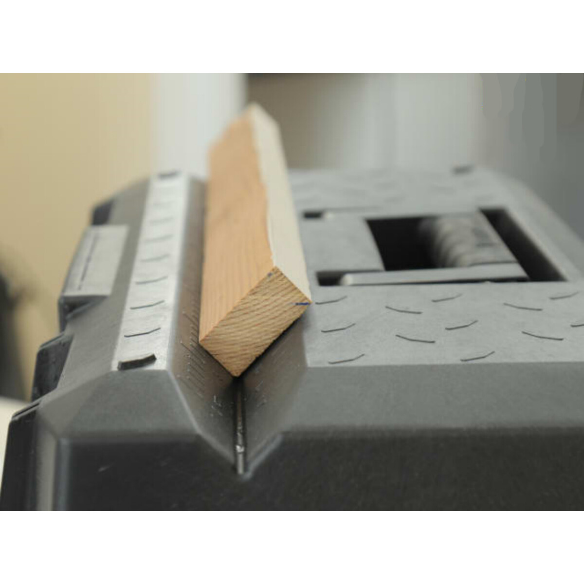 Integrated V-groove on top of the lid enables sawing when needed and is also suitable for working with pipes and timber.