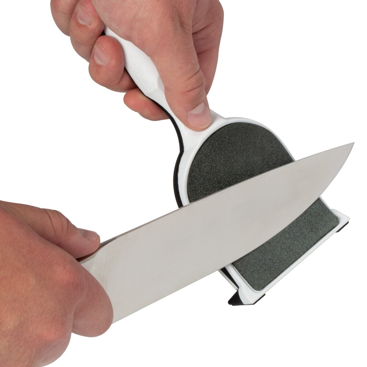 - In freehand use the sharpener adapts the same sharpening action as a chefs steel, or it can be used on a flat surface, eg chopping board